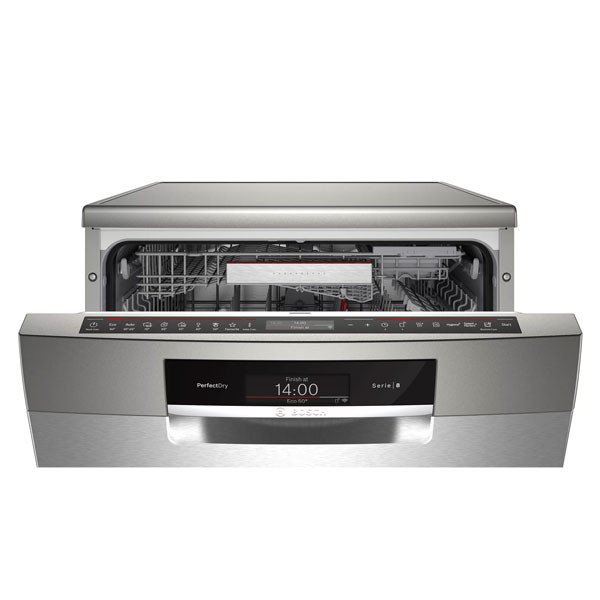 ماشین ظرفشویی BOSCH SMS8ZDI48 با رده انرژی +++A ظرفشویی سری 8 است که علاوه بر طراحی فوق العاده از امکانات مناسبی نیز برخوردار است. این ظرفشویی دارای 3 سبد بوده که سبد بالایی از جنس پلاستیک مقاوم برای قرار گیری قاشق و چنگال و دو سبد دیگر برای قرار گیری ظروف و قابلمه است. پنل این ظرفشویی شامل 8 برنامه شستوشو و 5 برنامه ویژه است. برنامههای شستوشو شامل شستوشوی قوی، شستوشوی اتوماتیک، شستوشوی اقتصادی، شستوشوی آرام یا شبانه، شستوشوی ظروف شیشهای، شستوشوی سریع و پیش شستوشو است. برنامههای ویژه نیز شامل خشک کن اضافی، شستوشو با نصف ظرفیت، شستوشوی Hygiene Plus ، قابلیت تنظیم از راه دور HOME CONNECT ، برنامه جرم گیر و Vario Speed Plus vh را دارد. ویژگی منحصر به فرد ظرفشویی 8zdi48 قابلیت استفاده با نصف ظرفیت است تا باعث کاهش مصرف آب و برق بدلیل ظروف کمتر از ظرفیت ظرفشویی شود. ویژگی Hygiene plus نیز موجب شستوشوی بهداشتی شده و باکتریهای ظروف را از بین میبرد. فناوری Active water استفاده شده در این ظرفشویی علاوه بر مصرف کمتر آب و انرژی حین شستوشو موجب گردش آب هدفمند ، بهبود عملکرد پمپ و گرمایش سریع آب میشود. سنسور load sensor وزن ظروف را اندازه گیری نموده و با توجه به وزن ، آب مصرف مینماید. ظرفشویی بوش قابلیت شروع با تاخیر داشته که میتوانید از 1 تا 24 ساعت برنامه شستوشو را به تعویق بیندازید. توسط این ویژگی میتوانید در زمان دلخواه حتی هنگامی که در منزل تشریف ندارید، ماشین ظرفشویی را روشن نمایید. سنسور DosageAssist میزان مواد شوینده و آب مصرفی را نسبت به کثیفی کنترل مینماید. توسط سیستم ضد نشت، در صورت نشت آب از ظرفشویی، آب به صورت اتوماتیک قطع میشود. قفل کودک تعبیه شده روی این ظروفشویی از باز شدن درب حین کار جلوگیری میکند.