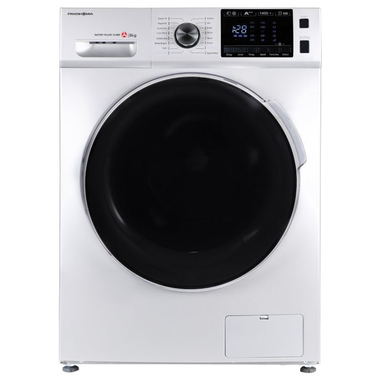این مدل در راستای مصرف بهینه اقداماتی نظیر، تعبیه ورودی مستقل آب سرد و گرم انجام داده است.از دیگر ویژگیهای ماشین لباسشویی پاکشوما با ظرفیت 8 کیلوگرم صدای کم آن است. این محصول 16 برنامه اصلی شستشو دارد. این میزان باعث شده تا با توجه به نیازتان برنامه مورد نظر را انتخاب کنید. برای مثال، استفاده از آبکشی اضافی؛ باقی ماندن مواد شوینده روی لباسها باعث ایجاد حساسیت پوستی و سوزش میشود. انتخاب این گزینه باعث میشود در مواقعی که شویندهی زیادی اضافه کردهاید، آبکشی مجدد انجام شود و مقدار شویندهی باقی مانده در الیاف لباسها را خارج کند.یکی دیگر از امکانات این مدل قفل کودک است. امروزه قفل کودک بر روی بسیاری از لوازم خانگی تعبیه میشوند و استفاده از آن به کودکان کنجکاو اجازه نمیدهد تنظیمات دستگاه را دست بزنند. به این ترتیب آنها دیگر نمیتوانند به طور اتفاقی برنامه شستشو را تغییر دهند و یا آنرا دچار وقفه کنند.