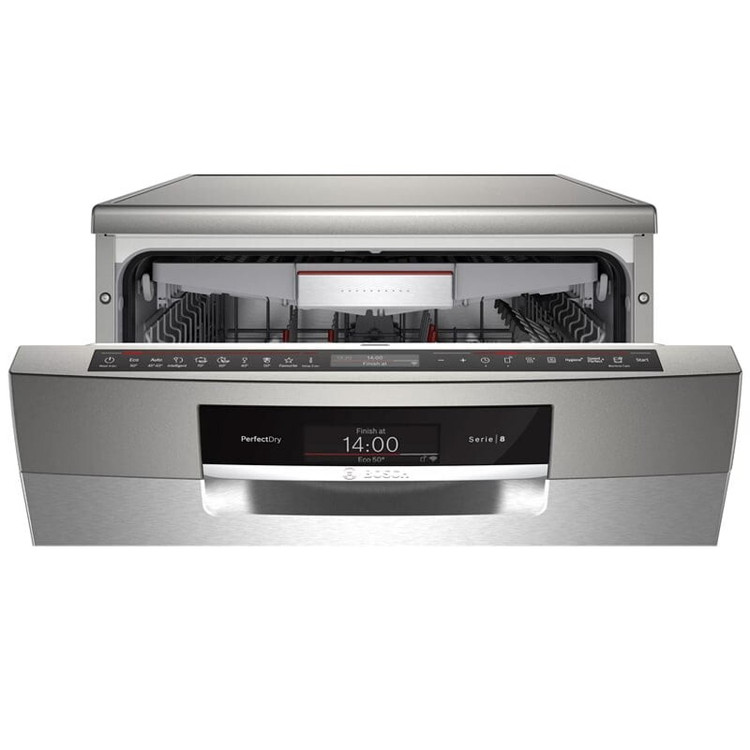 توضیحاتمشخصاتنظرات یکی از ملزومات زندگی در شستشو ماشین ظرفشویی بوش 8YCI03E سری 8 ساخت آلمان میباشد، که جزو بهترین محصولات این شرکت و رده بالاترین آنها قرار دارد و با ورودش شستشوی بهینه و مناسبی را انجام میدهد و برق خاصی بر روی ظروف شما خواهد انداخت. ظرفیتی که برای این مدل در نظر گرفته شده 14 نفره میباشد و به راحتی یک جمعیت بالا را پوشش داده میدهد در حالی که مصرف بهینهای دارد و شما را از شر قبوض آخر ماه خلاص می کند. ماشین ظرفشویی بوش 8YCI03E از بهترین تکنولوژی روز دنیا برای شستشو استفاده می کند و ظروفی که دست آخر تحویل میدهد به شدت تر و تمیز و عاری از هر نوع میکروبی خواهد بود. ظرفشویی سری 8 معمولاً قیمت بالایی را نسبت به بقیه به خود اختصاص میدهند و این به دلیل ارائه آخرین ورژن امکانات میباشد. اگر نگاهی به وسایل شستشو در سالهای اخیر انداخته باشید، متوجه خواهید شد که ظرفشویی بوش از اسم و رسم خوبی برخودار است و میتواند نیاز شما را در این امر به بهترین حالت ممکن برآورده کند. این برند آلمانی در ساخت محصولات خود گل کاشته و بهترینها را در هر سری به اجرا در میآورد و از شستشویی خوبی علیالخصوص در امر براقی ظروف برخوردار است. ظرفشویی 8YCI03E کاملاً هوشمند بوده و جزو مواردی است که به وای فای WiFi متصل میشود و امکان عیبیابی هوشمند دارد. امکان عیبیابی هوشمندامکان تنظیم ارتفاع سبدهاسبدهای تاشو و انعطافپذیربازشدن درب به صورت خودکار به گفته بوش: در ماشین ظرفشویی بوش 8YCI03E سبدهای تطبیق پذیر Max Flex Pro ما به شما امکان می دهند انواع ظروف را به راحتی بارگیری کنید و از نگهداری ایمن آنها اطمینان حاصل کنید. سیستم کشویی بهبود یافته بارگیری و تخلیه را روان و ساده می کند. بدنه مقاوم فولادی در کنار طراحی شیک و جذاب ظرفشویی بوش SMS8YCI03E ترکیب بینظیری را رقم زدهاند تا از ظاهر و کیفیت محصول خیالتان راحت شود. این مدل تک رنگ و سیلور میباشد و اثر انگشت شما بر روی آن باقی نخواهد ماند. همچنین از منو لمسی برای تنظیمات برنامهها در داخل درب برخورار است و باید گفت در قسمت داخلی شاهد سه طبقه سبد برای انواع ظروف هستیم، که امکان تنظیم ارتفاع و تغییر حالت را بر طبق ظروفی که دارید ممکن میکند. این محصول از ویژگی DosageAssist برای تنظیم مواد شوینده و AquaSensor یا همان حسگر آب برای صرفهجویی در مصرف بهره برده است و 8 برنامه در ترکیب خود برای شستشو دارد. میزان صدا حین شستشو بسیار کم بوده و این به دلیل وجود موتور قوی و کم صدای EcoSilence Drive میباشد و از عمر بسیار طولانی برخوردار است. با ما در افرالند همراه باشید تا با سایر قابلیتهای این محصول به صورت کامل آشنا شویمطراحی متمایز ماشین ظرفشویی بوش 8YCI03E ظاهر هر وسیلهای نقطه قوتی برای آن به حساب میآید، مخصوصاً اگر با دکور شما ارتباط مستقیمی داشته باشد. همانطور که مستحضر هستید آشپزخانه یکی از قطبهای اصلی خانه به شمار میرود و زیبایی آن قطعاً برای همه مهم است، زیرا معمولاً تایم طولانی را در آن سپری میکنیم. ظرفشویی 8YCI03E منجمله محصولاتی با طراحی ساده وشیک میباشد و سبکی عاری هر نوع شلوغی را به آشپزخانه شما میآورد و با هر چیزی به راحتی ست خواهد شد، حال سایر وسایل برقی شما باشد، یا کابینت با رنگهای متفاوت فرقی ندارد. این ظرفشویی تک رنگ و سیلور بوده و بدنه به صورتی کار شده، که اثر انگشتی باقی نخواهد گذاشت و نیاز به تمیز کردنهای مکرر ندارد. جنس آن نیز از فولاد ضد زنگ میباشد و ضربه در آن کارساز نخواهد بود. بر روی درب شاهد یک صفحه نمایش لمسی از نوع TFT هستیم و زمان باقی مانده و مرحله شستشو را به ما نشان خواهد داد. در گوشه صفحه نمایش ماشین ظرفشویی بوش 8YCI03E اصلی این سری کلمه Seire 8 نوشته شده است. منو اصلی که برای انتخاب برنامهها استفاده میشود در داخل درب قرار داده شده تا از شلوغ پلوغی روی درب جلوگیری شود. فضای داخلی ظرفشویی 8YCI03E فضای داخلی ظرفشویی بوش سری 8 کمی جذاب کار شده و از قابلیتهای عالی در این زمینه برخوردار است. قبل از هر چیزی شاهد سه طبقه بزرگ بر