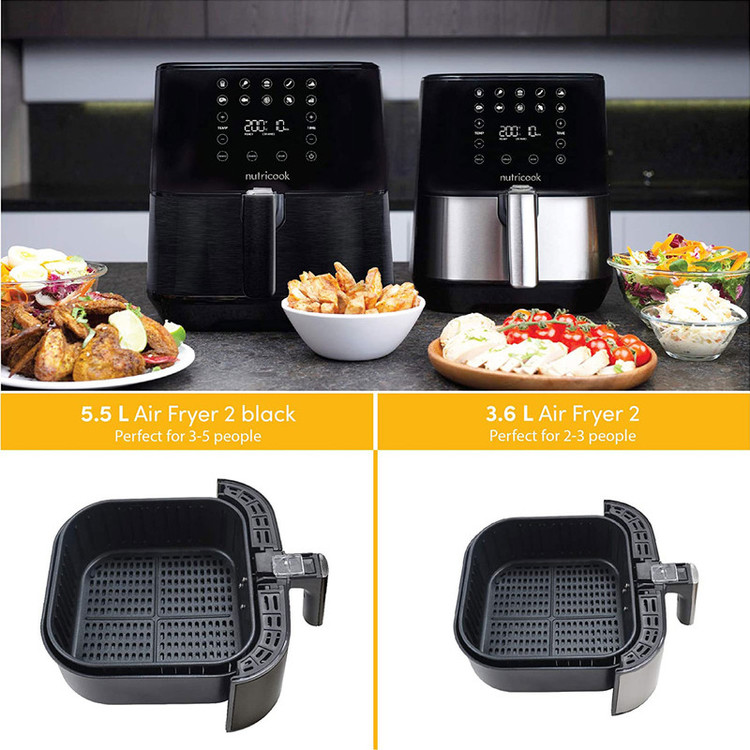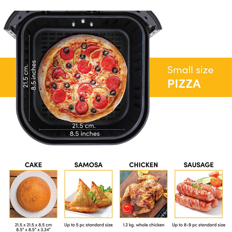 سبد عاری از PFOA, BPA دارای تکنولوژی Shake reminder که زمان هم زدن مواد را یادآوری می کند. دارای 10 برنامه پخت پیش فرض دارای برنامه Pre heat برای گرم کردن محفظه قبل از شروع پخت