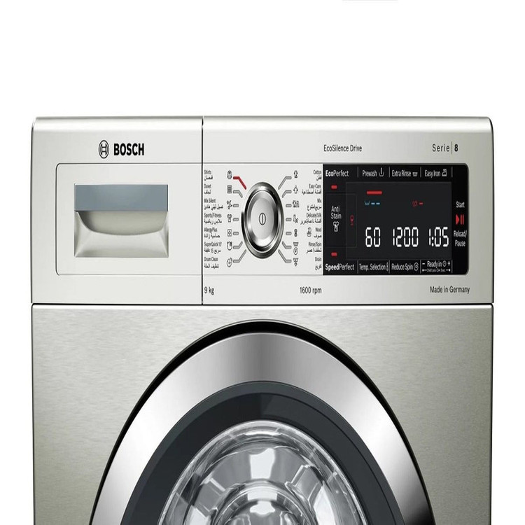 ماشین لباسشویی بوش 325 جزوه محصولات خوش ساخت و ایده آل شرکت آلمانی بوش می باشد. با توجه به ظرفیت 9 کیلوگرم زندگی ایده آل همراه با تجربه یک چرخه شستشوی عالی و با کیفیت را در اختیار مخاطبان قرار خواهد داد. زیبایی و جذابیت بدنه در کنار رنگ نقره ای بهترین مکمل برای مدرن نمایش دادن آشپزخانه ها خواهد بود. در ساختار این لباسشویی برجستهترین و خاص ترین امکانات روز دنیا را گنجانده اند تا چرخه شستشوی لذت بخشی را برای هر خانواده ای به همراه داشته باشد. به عنوان مثال برنامه های مختلف شستشو که در ماشین لباسشویی 9 کیلوی بوش 325 گنجانده شده دست کاربران را به هنگام شستشوی لباس باز نگه می دارد. در این حال شما می توانید بسته به نوع کثیفی لباس، درجه حرارت و دما را تنظیم کنید و لباس های تمیز و بدون چین و چروک را تحویل بگیرید.تعداد برنامه ها به 14 برنامه خواهند رسید. شامل: شستشو سریع، شستشو روزانه؛ لباس های رنگی، سفید، تیره، لباس های مخلوط، لباس های ورزشی، برنامه ی Vario perfect ،speed perfect، برنامه ی آلرژی و…می باشد. برنامه ی Vario perfect جزو برجستهترین داراییهای این دستگاه به شمار میرود که شستشوی کارآمد را در کمترین زمان ممکن ایجاد خواهد نمود. فناوری Active Water نیز به نوبه ی خود در بهترین حالت نقش خود را ایفا می نماید. یعنی بر میزان مصرفی آب مدیریت میکند و یک چرخه شستشوی کامل و بی عیب و نقص را به پایان میرساند. برنامه شستشو با تاخیر 24 ساعته تنظیم مدت زمان کارایی هر زمان که بخواهید دستگاه به صورت خودکار شروع به کار میکند. با توجه به سنسور بارگیری آب و مواد شوینده با توجه به وزن البسه و میزان کثیفی تنظیم می شود.
