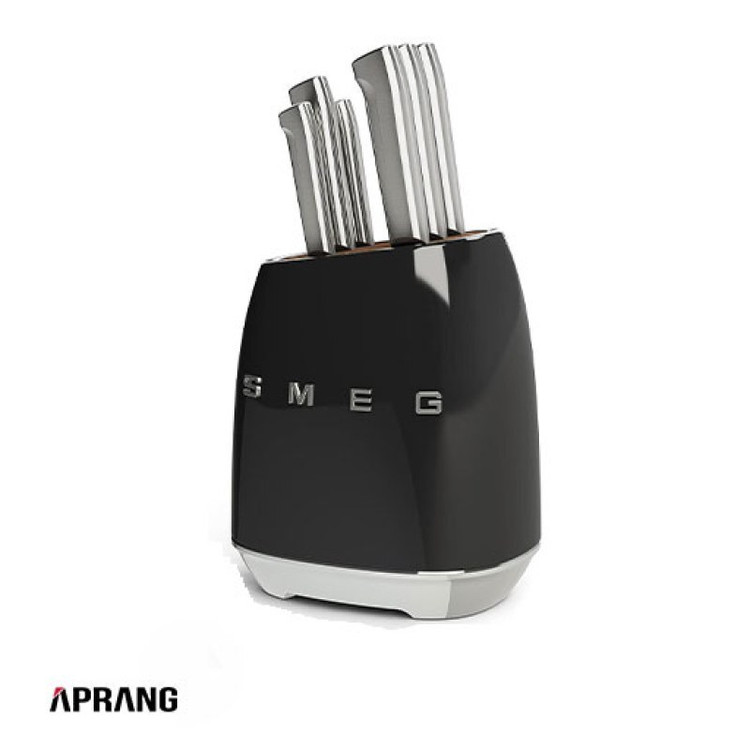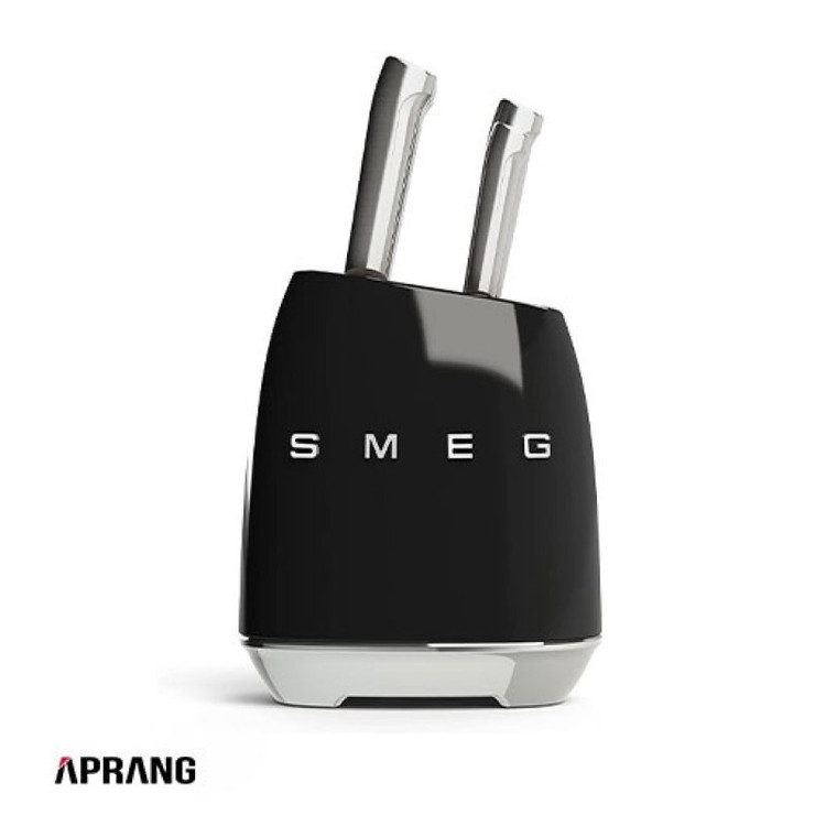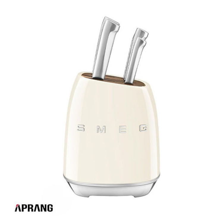 نمای بیرونی فولاد کربنی با پوشش پودری در کرم براق برای هماهنگی با سایر لوازم کانتر SMEG، و پایه های ضد لغزش مانع از لغزش بلوک در هنگام برداشتن چاقو می شوند. فقط شستن با دست