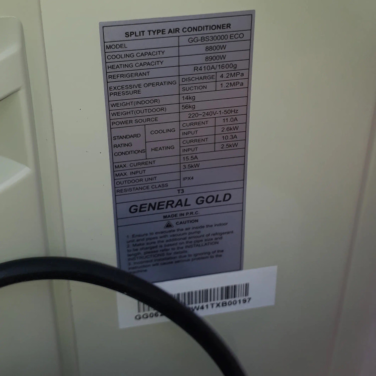 کولرگازی اسپلیت جنرال گلد 30هزار